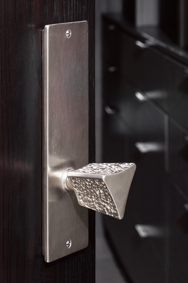 With textured surfaces, Available in lever or knob, Made in bronze, Available in various finishes, Created by renowned designers Kravitz Design and envisioned by Lenny Kravitz